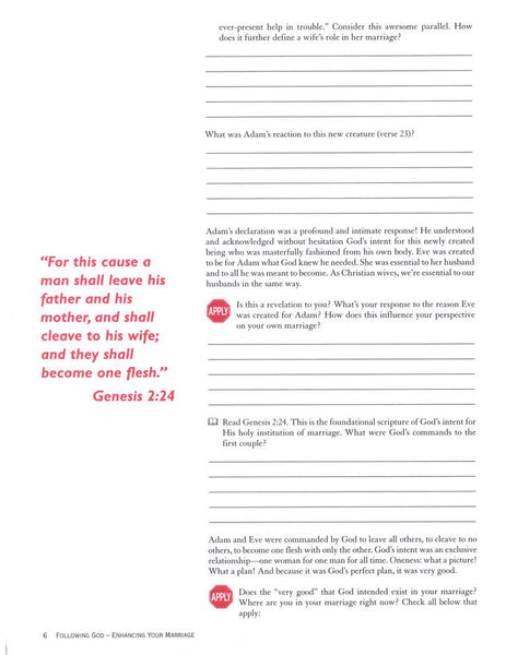 Following God: Enhancing Your Marriage: A Women’s Bible Study, Workbook